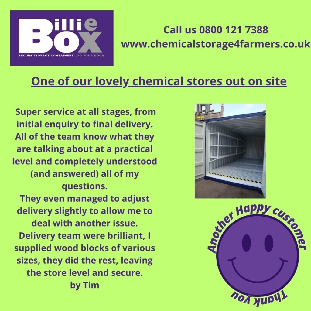 We at Billie Box Ltd specialise in converting shipping containers into secure steel bunded storage containers for chemicals or pesticides. Perfect for the agricultural industry, schools, hospitals and councils’ pesticide storage.